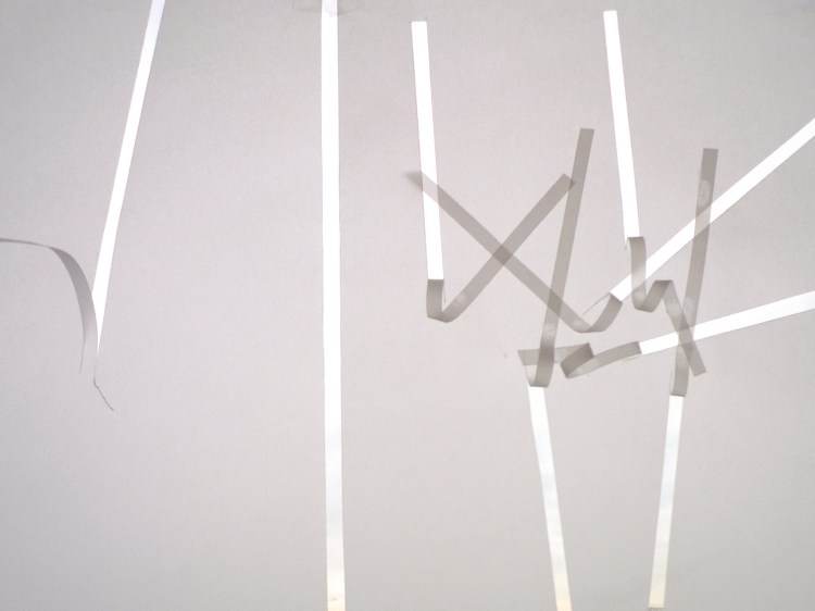 Successive cuts through a sheet of tracing paper create delicate and translucent curls. The video records this transformation from flatness to volume, from quietness to destruction. 3D patterns emerge from the material itself.